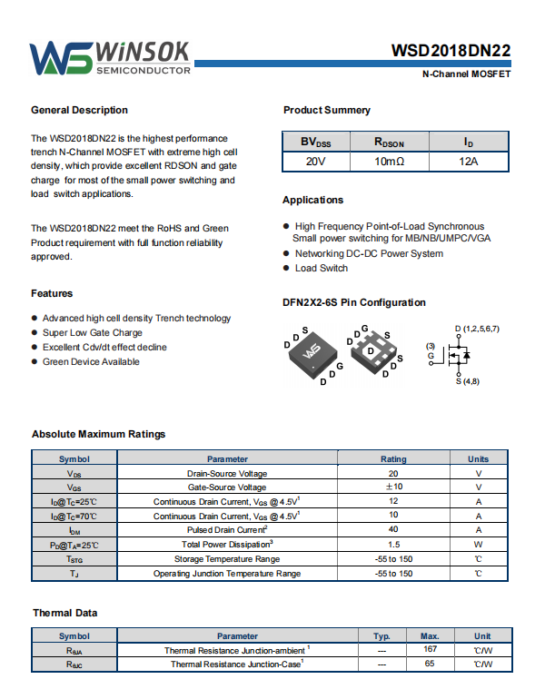 随着“办公座舱”概念升温,副驾折叠桌板需集成5V/9V USB、LED照明、触控按键等模块,空间被压缩至“毫米级”,却必须满足“零继电器噪音+零待机功耗+1mm高度”三重要求。微硕WINSOK推出DFN2×2-6S N沟MOSFET WSD2018DN22,凭10mΩ低导通电阻与12A峰值电流,为12V平台桌板LED照明提供“芯片级”静音负载开关方案,一键实现“无感”点亮与μA级待机。