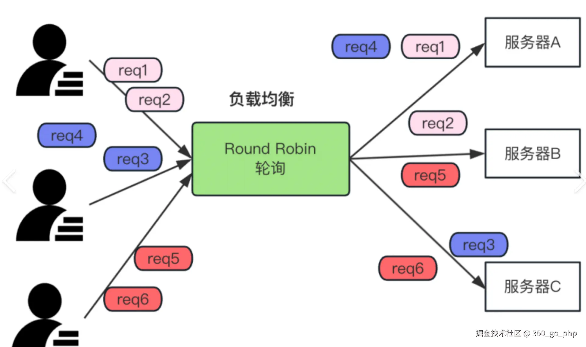 - 加权轮询:根据服务器的能力(如CPU、内存、网络带宽等)来调整权重,给性能更好的服务器分配更多的请求。