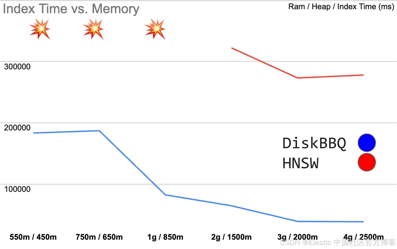 图 1:显示索引时间(毫秒)与 RAM / JVM Heap 的关系